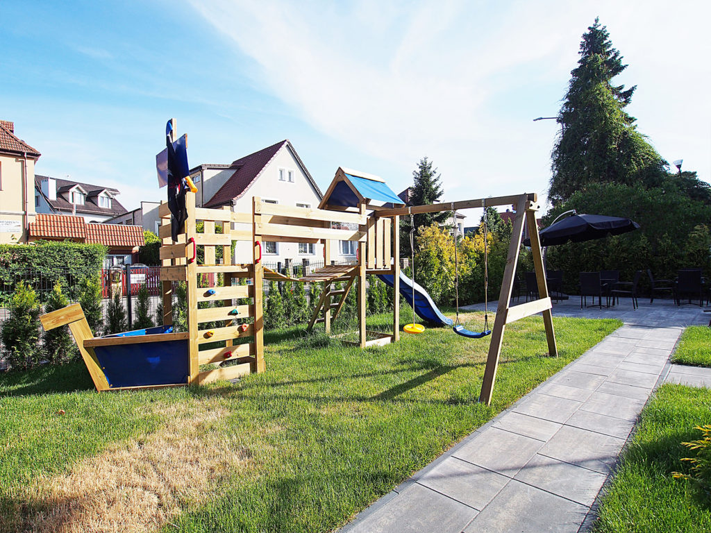 Dla naszych gości przygotowaliśmy siłownie oraz pokój zabaw dla najmłodszych, dla których, to również w ogrodzie czeka piracka przygoda na placu zabaw. W części ogrodowej czekają leżaki, parasole, stoliki z krzesłami oraz grill z pełnym wyposażeniem.